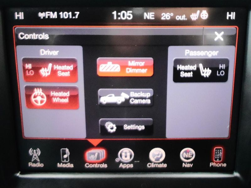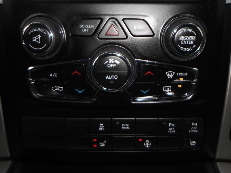 8-Speed Automatic Air Conditioning ATC w/Dual Zone Control, Ash Tray Lamp, Auto-Dimming Exterior Mirrors, Big Horn Badge, Big Horn Regional Package, Bright/Bright Billets Grille, Class IV Receiver Hitch, Dual Rear Exhaust w/Bright Tips, Electric Shift-On-Demand Transfer Case, Electroluminescent Instrument Cluster, Exterior Mirrors Courtesy Lamps, Exterior Mirrors w/Supplemental Signals, Fog Lamps, Glove Box Lamp, Heated Front Seats, Heated Seats & Wheel Group, Heated Steering Wheel, Humidity Sensor, Leather Wrapped Steering Wheel, LED Bed Lighting, Overhead Console w/Garage Door Opener, ParkSense Front/Rear Park Assist System, ParkView Rear Back-Up Camera, Power Folding Mirrors, Power Heated Fold-Away Mirrors, Premium Cloth 40/20/40 Bench Seat, Quick Order Package 26S Big Horn, Radio: Uconnect 8.4, Rear Dome w/On/Off Switch Lamp, Rear-View Auto-Dimming Mirror w/Microphone, Remote Start System, Security Alarm, Steering Wheel Mounted Audio Controls, Sun Visors w/Illuminated Vanity Mirrors, Underhood Lamp, Wheels: 20'' x 8'' Aluminum Chrome Clad.
